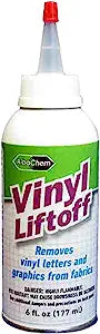 AlbaChem Vinyl Letter Removing Solvent completely removes vinyl letters and residual adhesives from most fabrics. The yorker spout allows for easy application minimizing waste. Highly effective and fast drying, Vinyl Letter Remover saves you time and money by dramatically reducing "seconds".